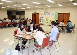 水質調査会場となった、青梅信用金庫本店7階の大会場。